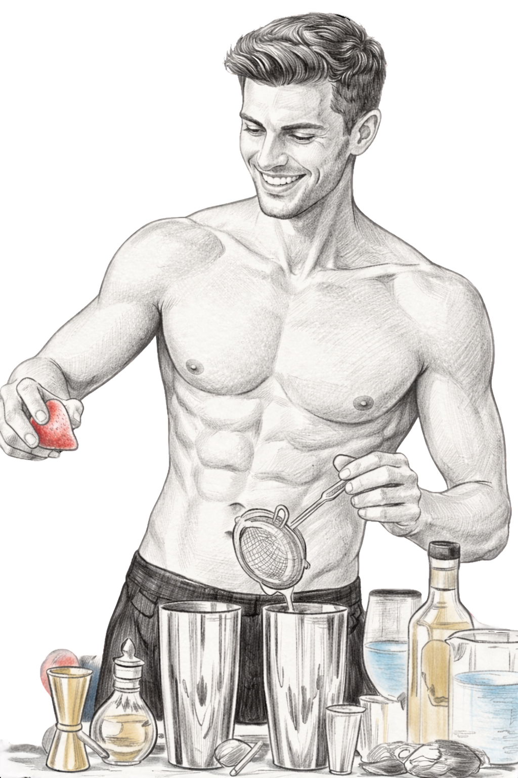 If you’d rather get hands-on, our hunky mixology experts are ready to bring the bar to you. We’ll turn up at your house or holiday rental with premium spirits, fresh ingredients, and all the kit. You’ll learn to shake, stir, and pour like a pro in a high-energy session that gets the party started from the very first sip.